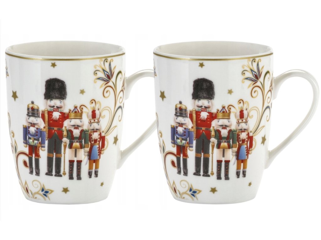 Začnite deň s úsmevom v spoločnosti vianočných hrnčekov z kolekcie Luskáčik. Dvojica porcelánových hrnčekov s objemom 380 ml vyniká jemným leskom, zlatými ornamentmi a motívom tradičných vojačikov, ktorí sa stali ikonou Vianoc. Každý dúšok kávy, čaju či horúcej čokolády s nimi dostane slávnostný nádych.