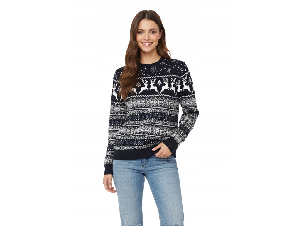 Tento tmavomodrý vianočný sveter s bielym nórskym vzorom predstavuje dokonalú kombináciu elegancie a zimného pohodlia. Motívy sobiov, vločiek a hviezd vytvárajú klasický severský štýl, ktorý nikdy nevyjde z módy. Je to ideálny kúsok pre tých, ktorí preferujú decentný, no výrazne sviatočný outfit.