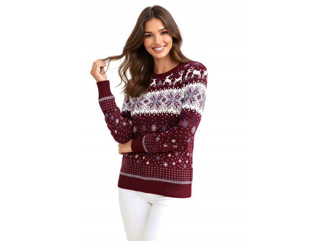 ✨ Tip: Bordový vianočný sveter krásne vynikne na svetlých outfitoch – skombinujte ho s rifľami alebo bielymi nohavicami pre dokonalý kontrast na sviatočných fotkách.