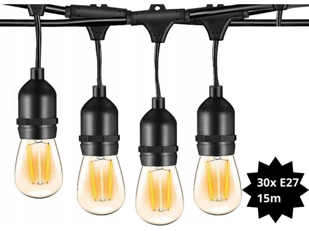 LED svetelná girlanda 10-20m 20xE27 teplé biele svetlo IP44 do záhrady