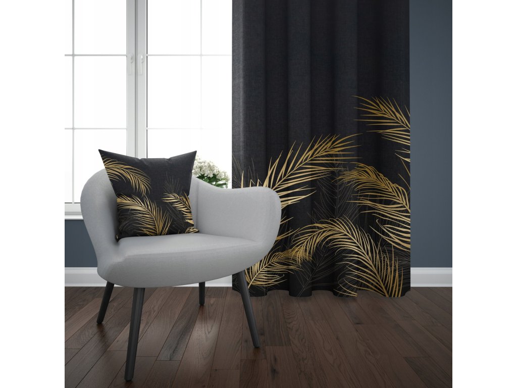💡 Tip pre vás: Záves Noir Palms vynikne v kombinácii s elegantnými doplnkami v zlatej – vyskúšajte napríklad aj obliečky na vsnkúše alebo obrus z rovnakej série.