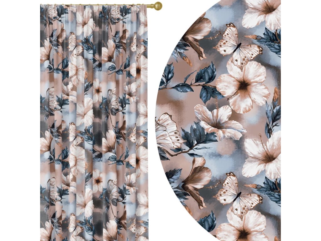 Zatemňovací záves Moon Garden je ako stvorený pre tých, ktorí túžia po jemnom a harmonickom interiéri. Kvetinový vzor s motýľmi v odtieňoch béžovej, modrej a nádychu karamelu prináša do miestnosti pocit pokoja a prírody. Ideálny do spálne, detskej izby alebo romantickej obývačky. Kombinujte s prírodnými materiálmi, svetlým drevom alebo pastelovým nábytkom pre dokonalý efekt.