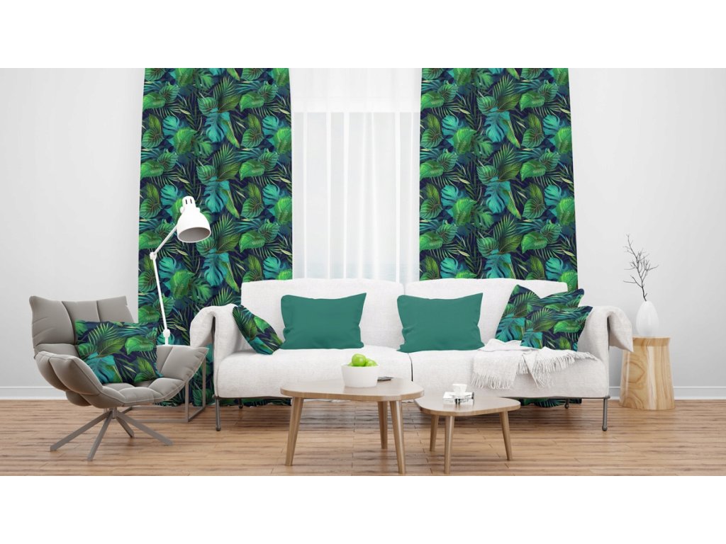 Zatemňovací záves Jungle Midnight vnesie do vášho interiéru atmosféru tropického raja. Kombinácia sýtozelených listov a tmavomodrého podkladu pôsobí dramaticky, štýlovo a zároveň upokojujúco. Tento výrazný dizajnový prvok dokonale doplní moderné aj exoticky ladené interiéry a vďaka zatemňujúcej funkcii zabezpečí kvalitný odpočinok aj počas dňa.
