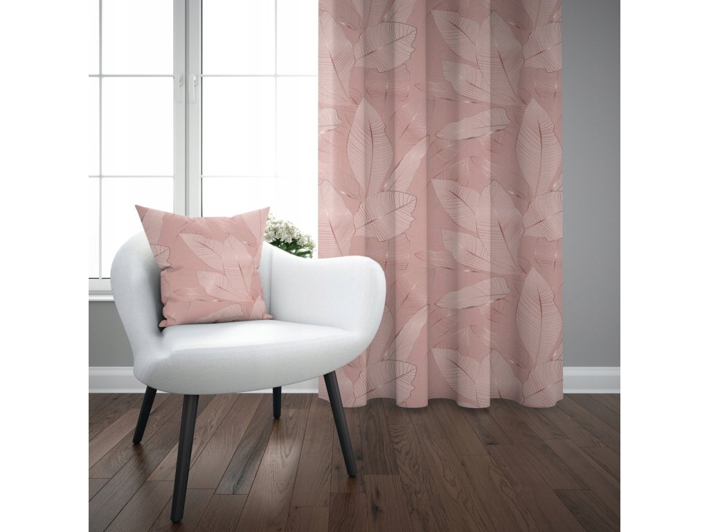 Zatemňovací záves Powder Leaf – jemný listový vzor v púdrovo ružovej