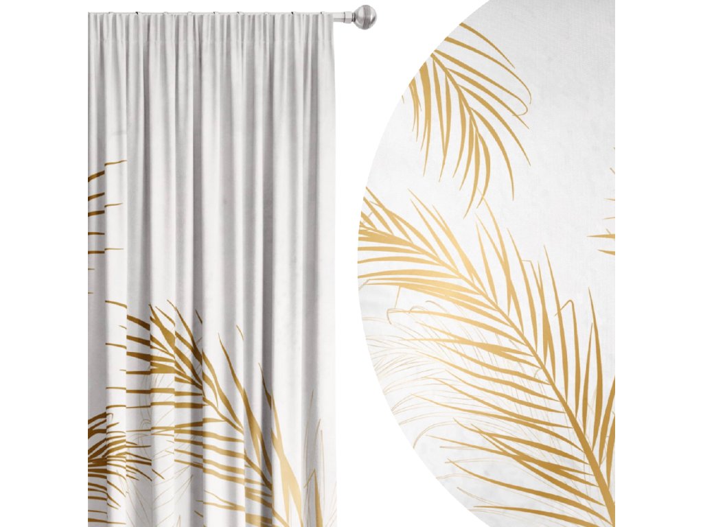 Zatemňovací záves s motívom Golden Palm - zlatisté palmové listy na bielom podklade
