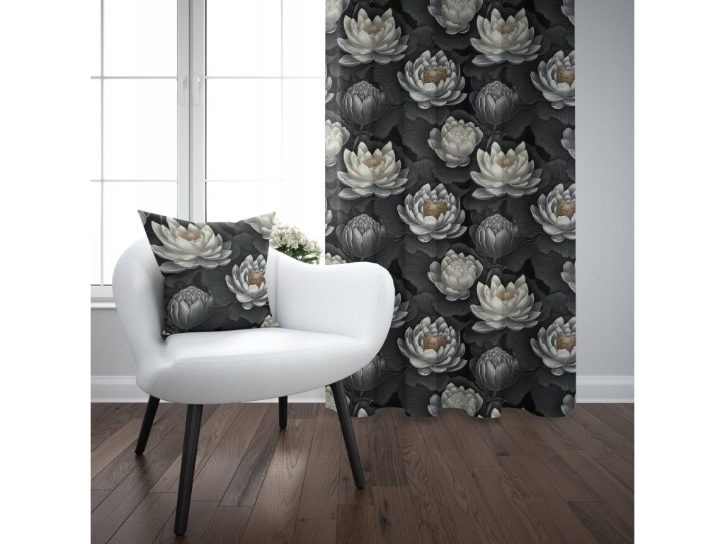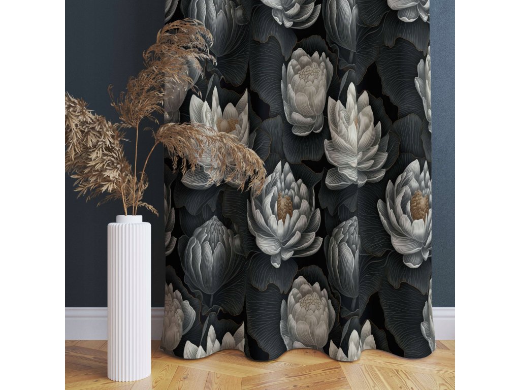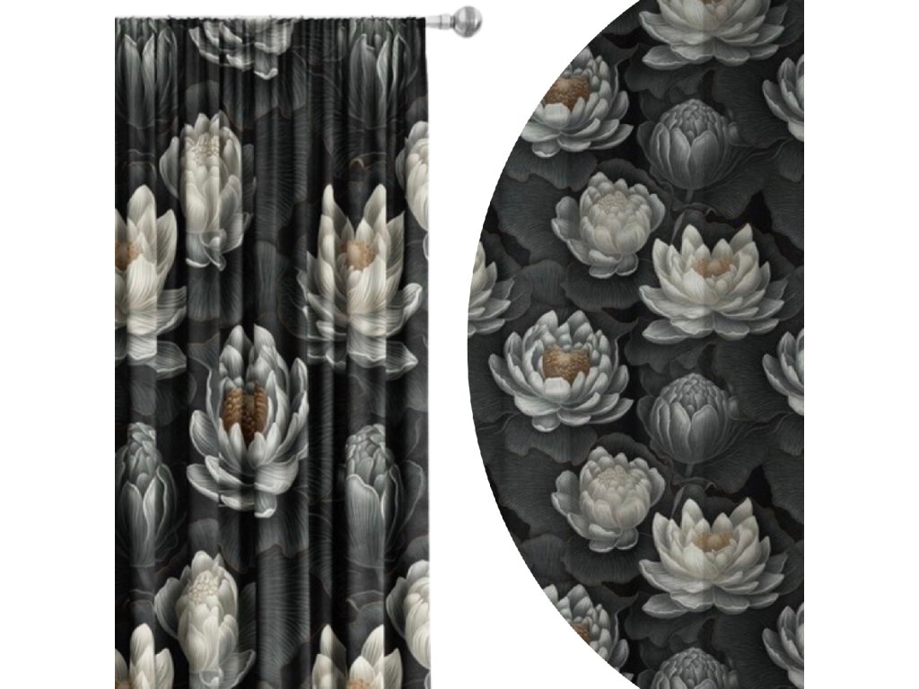 Zatemňovací záves Lotus Noir – elegantný lotosový kvet v čierno-bielom kontraste