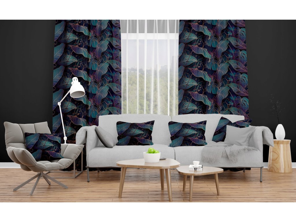 Zatemňovací záves Emerald Night je pastvou pre oči – tajomné listy v smaragdových, fialových a zelených odtieňoch na tmavom pozadí navodia pocit hĺbky a elegancie. Hustý materiál efektívne tieni a izoluje, pričom vďaka riasiacej páske sa jednoducho vešia. Tento záves sa nekrčí a netreba ho žehliť, čo ocení každá moderná domácnosť.