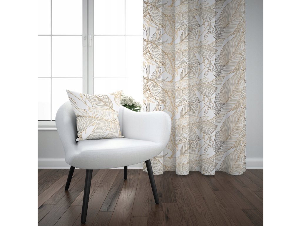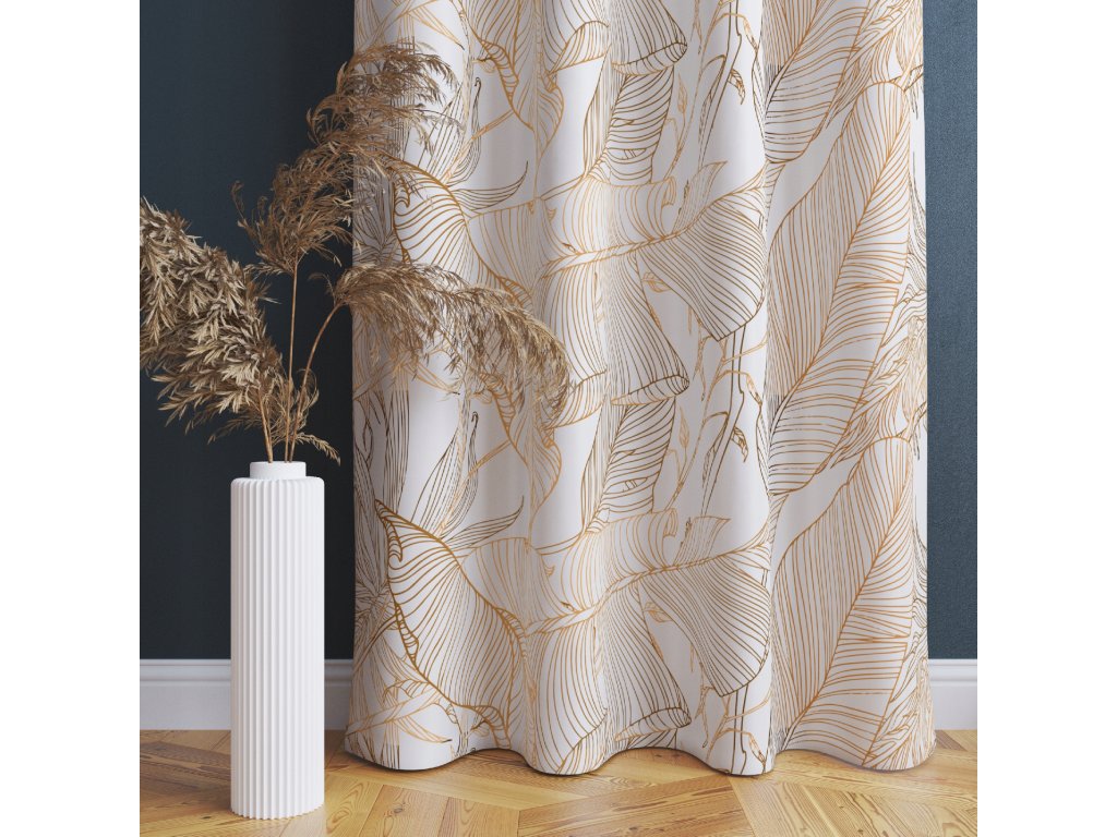 Zatemňovací záves v bielej farbe so zlatým listovým motívom