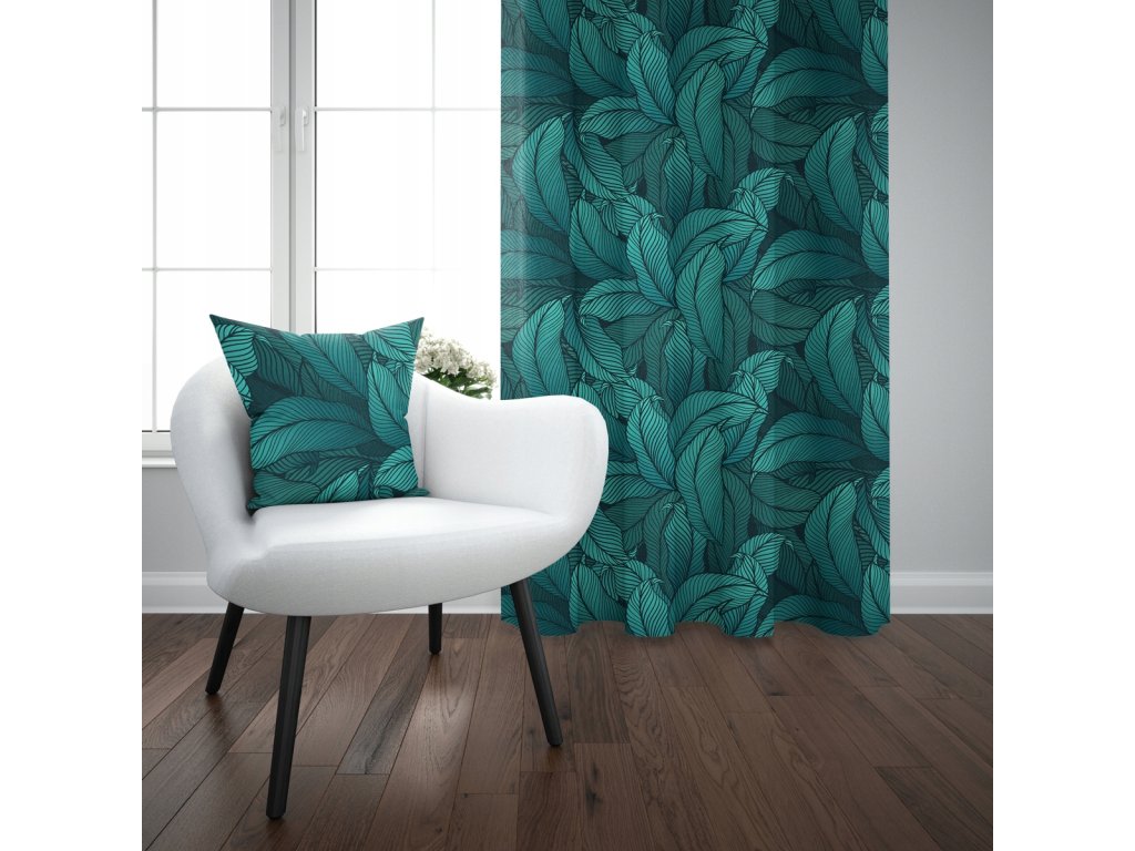 Zatemňovací záves Tropical Lines – listový vzor v petrolejovej zelenej a čiernej
