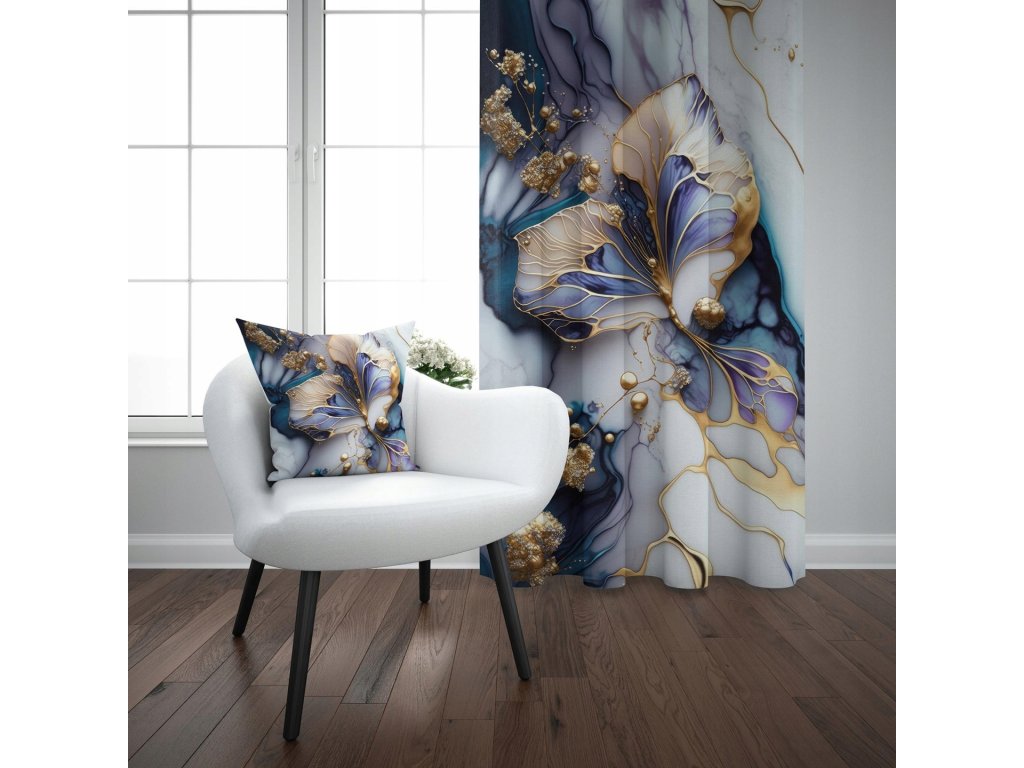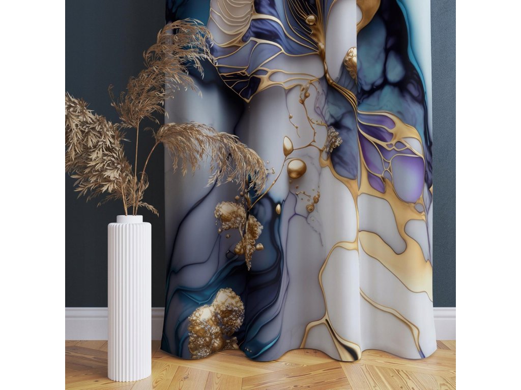 Zatemňovací záves Golden Petal prináša do interiéru eleganciu a jemnosť v dokonalej súhre farieb. Očarujúci kvetinový dizajn s akcentmi zlata a jemných fialovo-modrých tónov pôsobí ako umelecké dielo priamo na vašom okne. Vďaka účinnému zatemneniu vám poskytne súkromie a pokojné prostredie na oddych počas celého dňa. Ideálny do spálne, obývačky alebo pracovne, kde túžite po štýle bez kompromisov.