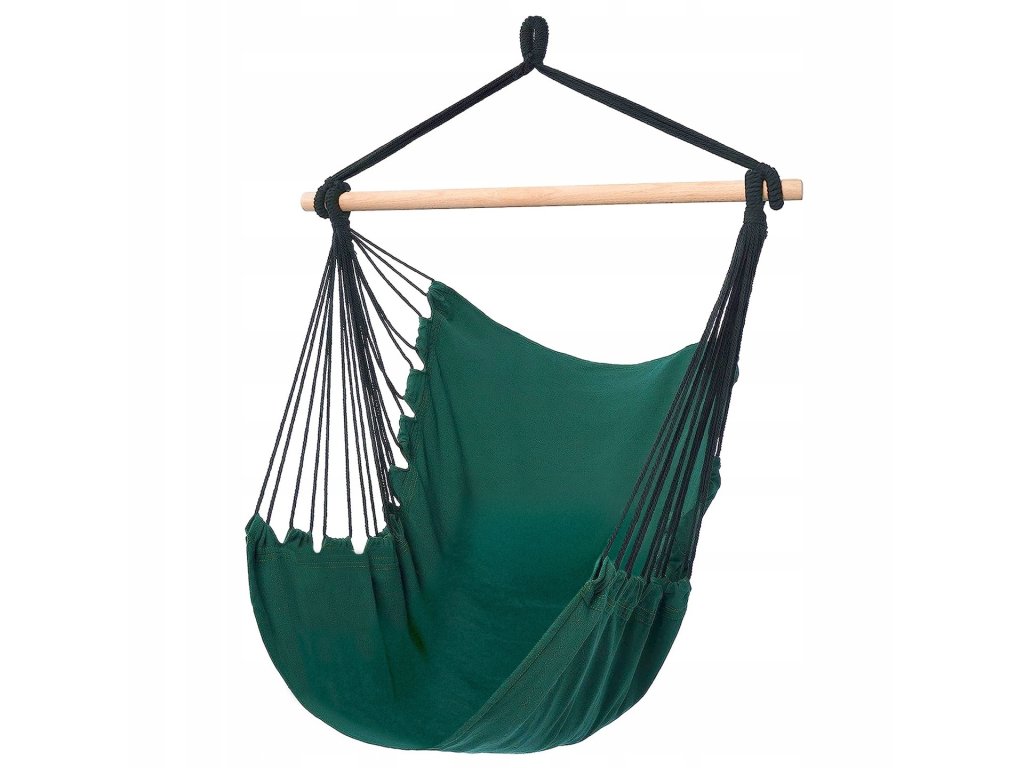 Toto závesné brazílske kreslo vo farbe fľaškovozelenej je dokonalým miestom na oddych po dlhom dni. Vďaka príjemnému bavlnenému materiálu s priedušnosťou a stabilnej drevenej výstuhe ponúka pohodlie aj stabilitu. Kreslo sa jednoducho zavesí na strom, hák alebo stropný držiak a vďaka priloženému obalu ho môžete ľahko preniesť alebo uskladniť.