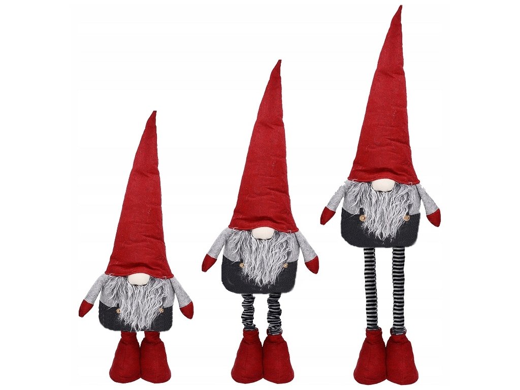 Vianočný škriatok s nastaviteľnými nohami – červený dekoračný škriatok 70 cm (teleskopické nohy)