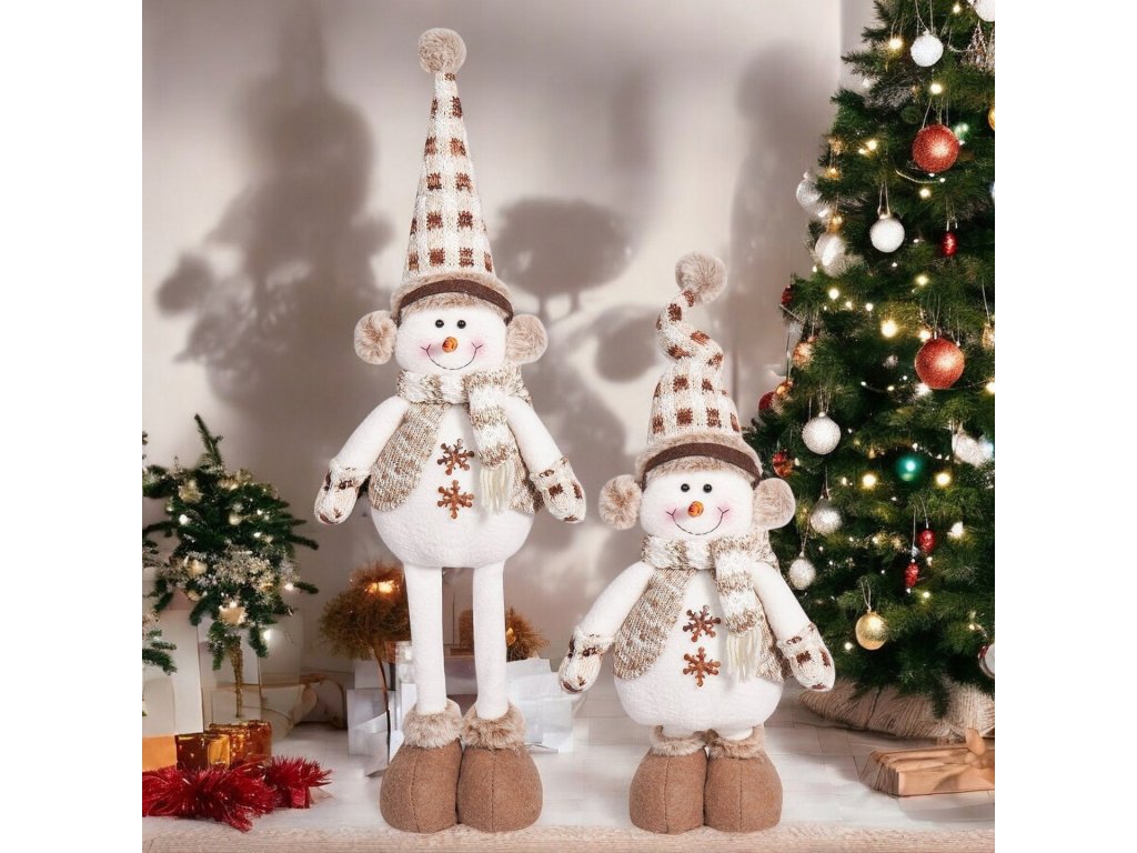 Vianočný snehuliak s teleskopickými nohami – dekorácia v béžovo-bielej farbe 60 cm