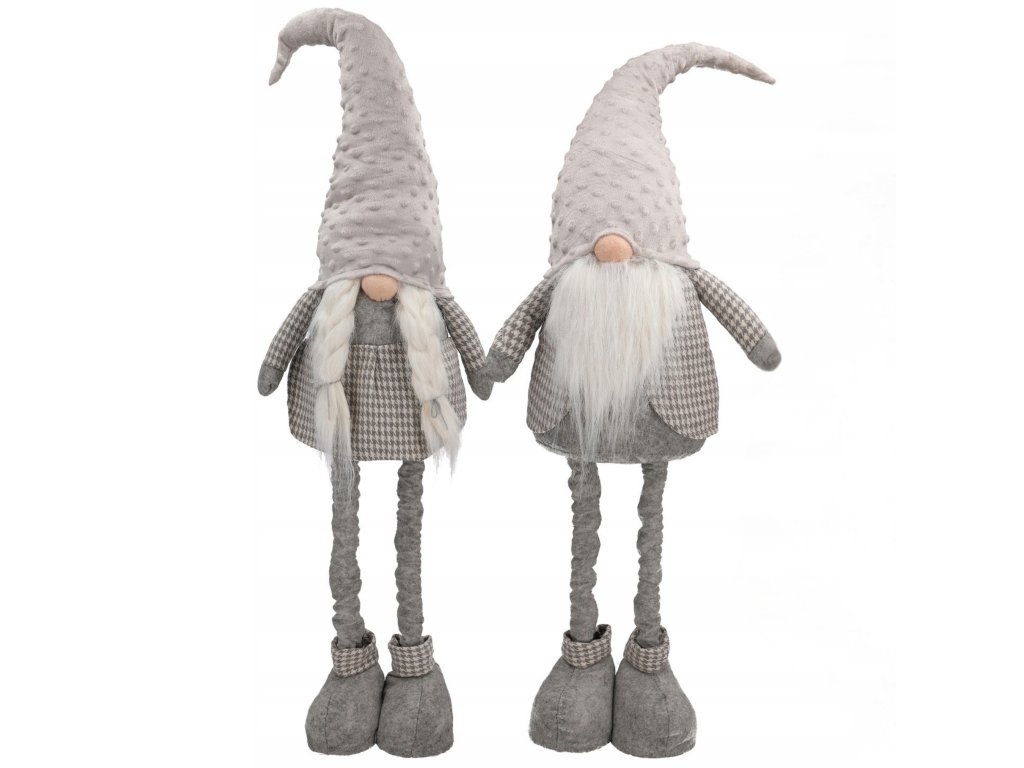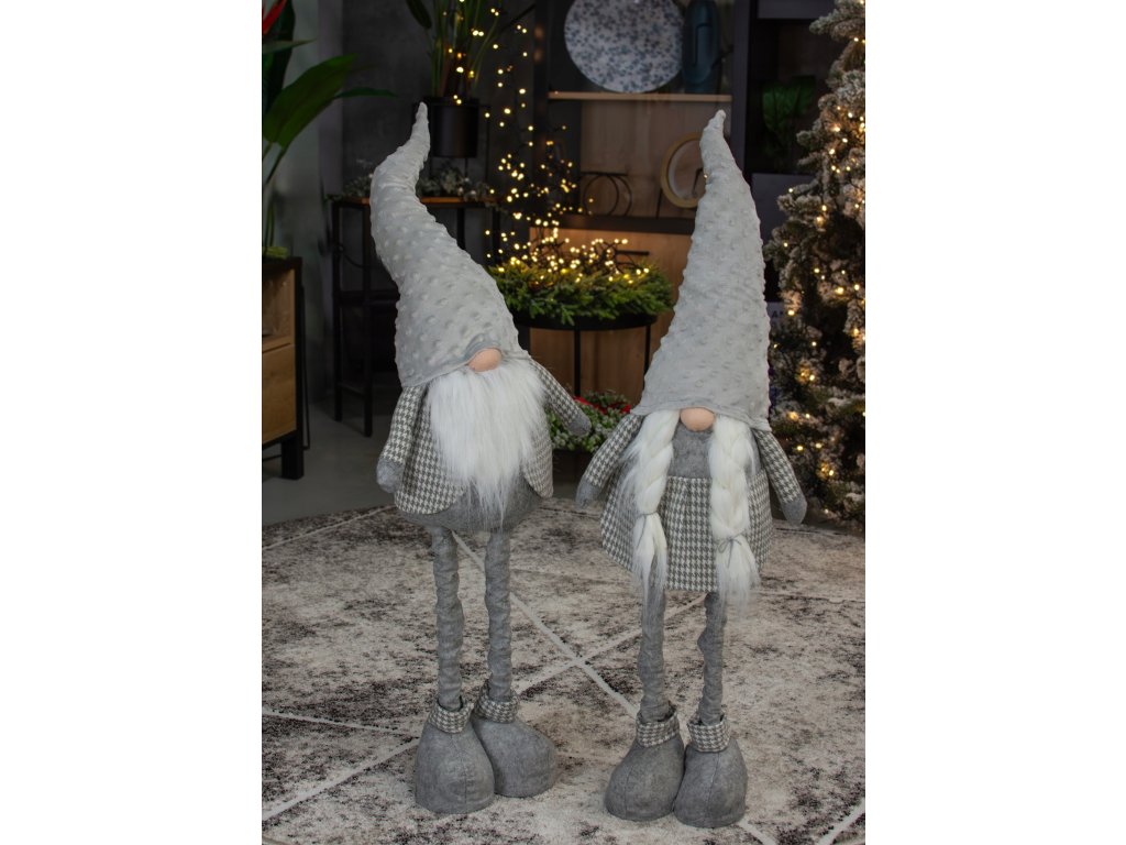 Vianočný pár škriatkov na teleskopických nohách – sivá dekorácia 90 cm