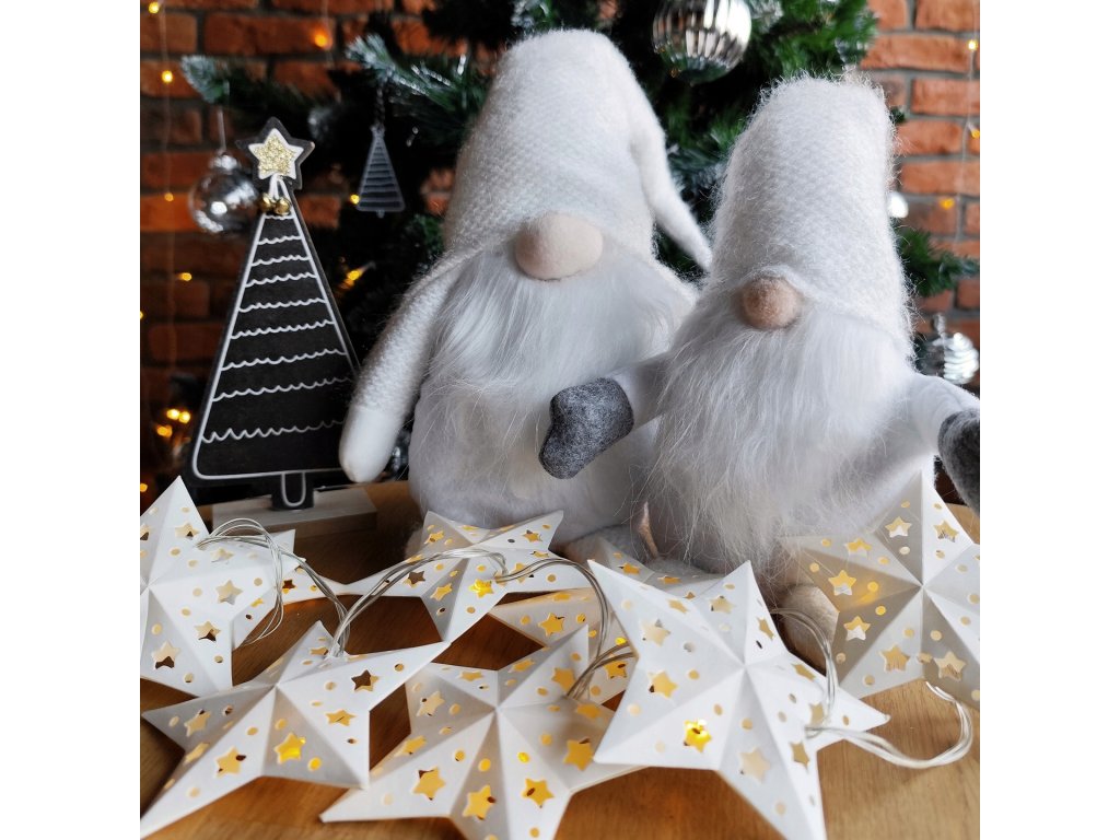Tento biely vianočný škriatok vyžaruje jednoduchosť a noblesu. Pochádza zo severskej tradície, kde škriatkovia symbolizujú šťastie, rodinné teplo a ochranu domova. Svojou dlhou bradou, pletenou čiapkou a mäkkými detailmi vnesie do interiéru pokoj a kúzlo sviatkov.